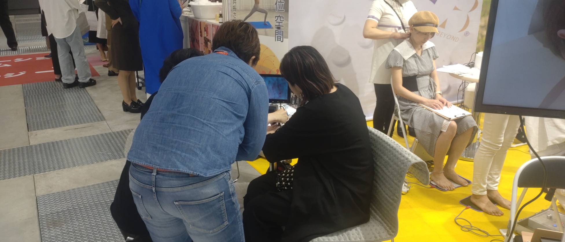 皆さんに実際にご体験いただき、「DENBAのシートに座る前と比べ血流がすごく元気になった!」「会場を歩き回った足の疲れが楽になった」と大好評でした。